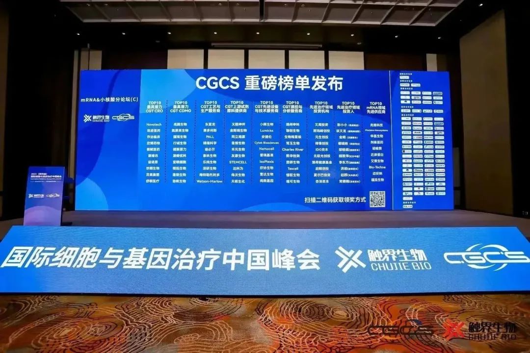 为促进行业发展,鼓励产业上下游企业创新与合作,CGCS组委会联合弗若斯特沙利文、ASGCT等机构发布了“2023 CGCS重磅榜单”。榜单排名涉及的企业包括CGT领域的试剂原材料供应商、仪器设备供应商、技术服务与外包供应商、投资机构及投资人等单位或个人。