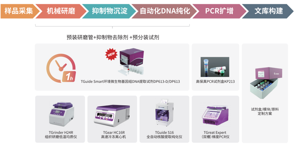 TIANGEN带来了适合多种复杂环境样本核酸前处理、提取和检测等完整的产品解决方案,以确保从环境样本中提取的核酸数据能够准确反映环境生态系统的状态和变化,助力环境样本精准检测。