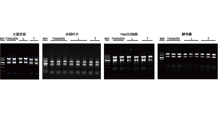经 TRNzol Universal 试剂提取的总 RNA 有效的消除了 DNA 和蛋白等杂质的污染,可直接用于 Northern Blot、Dot Blot、 PolyA 筛选、体外翻译、RNase 保护分析、 cDNA 文库构建、RT-PCR、荧光定量 PCR、高通量测序等各种分子生物学实验。