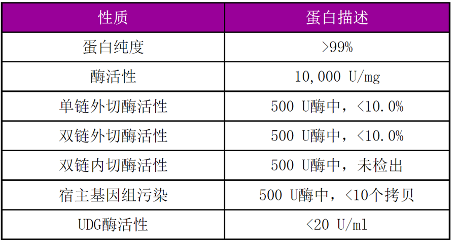 Fragment 的突变酶。该酶在模板和引物存在的条件下,以 dNTP 作底物,沿 5’-3’方向催化与模板互补 DNA 的合成。通过点突变改造,使本酶同时失去了 3’-5’外切核酸酶的活性和切刻平移活性。本产品是通过大肠杆菌表达的重组酶。分子量大小约为 68.1